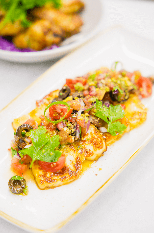 our signature hommus dip, topped with mincemeat pan fried in our signature spices with toasted pinenuts in sizzling ghee
